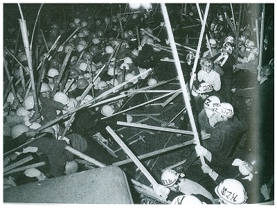 코너에 몰린 나머지 흉포하게 변한 일본공산당=민청은 전국에서 인원을 총동원해 전공투를 적대했다. 전공투도 전국의 학생과 노동자에 지원을 요청한다. 여기서부터 도쿄대 투쟁은 ‘전국적 투쟁’으로 전화하기 시작한다.