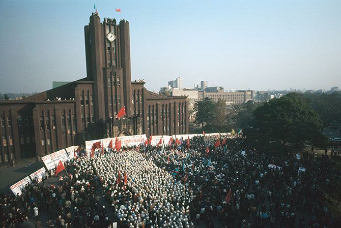 1968년 1월 29일 도쿄대 의학부가 무기한 파업에 돌입한다. 2월 19~20일에는 의학부 ‘春見사건’이 일어난다. 여기에 관련해 3월 11일 17명의 학생, 연구생, 연수생에게 퇴학, 정학 등 중징계가 내려진다. 이것이 도쿄대 투쟁의 발단이 된다.